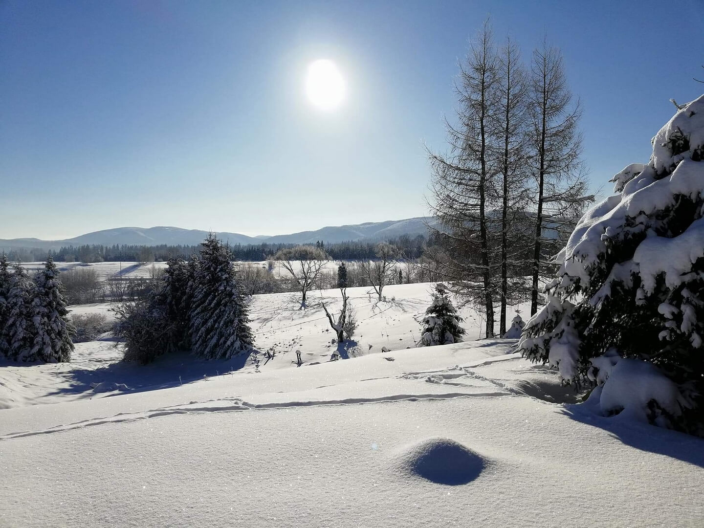 Kruszyna i Rumianek są położone na pół hektarowej łące otoczonej świerkami.